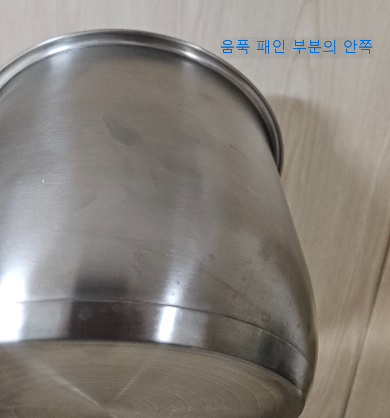 제품 출시 시 대부분의 연마제가 제거되었지만, 내솥 윗부분 뒷편의 숨겨진 부분에는 여전히 연마제가 남아 있었습니다.